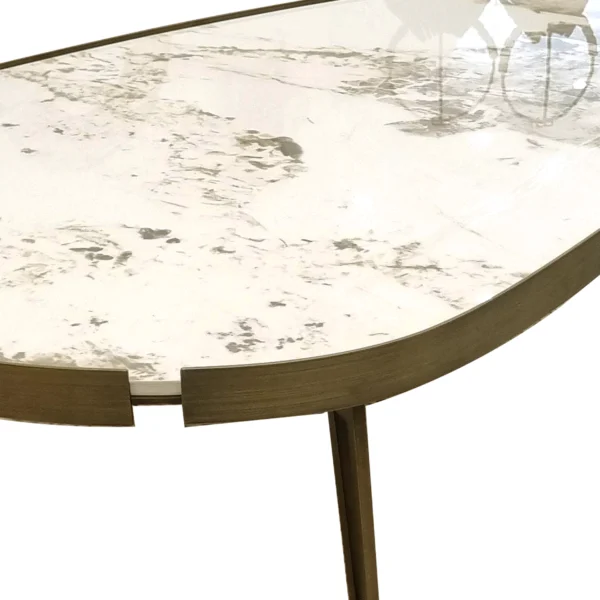 The modern design and materials add a touch of sophistication to any room. Perfect for holding drinks, snacks, and conversation pieces in the living room. The sintered stone surface is easy to clean and maintain, perfect for busy households.